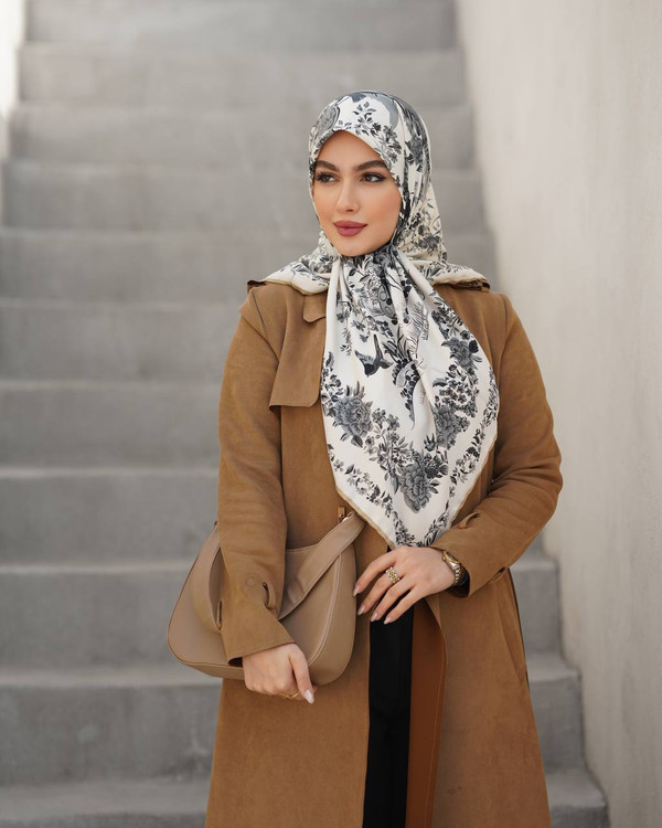روسری زنانه ابریشم توییل کجراه قواره ۱۲۰