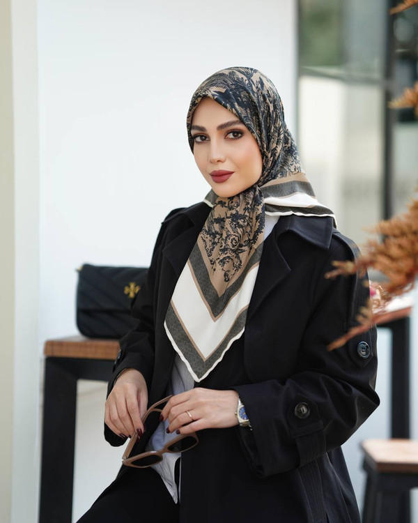 روسری زنانه ابریشم توییل کجراه قواره ۱۰۰