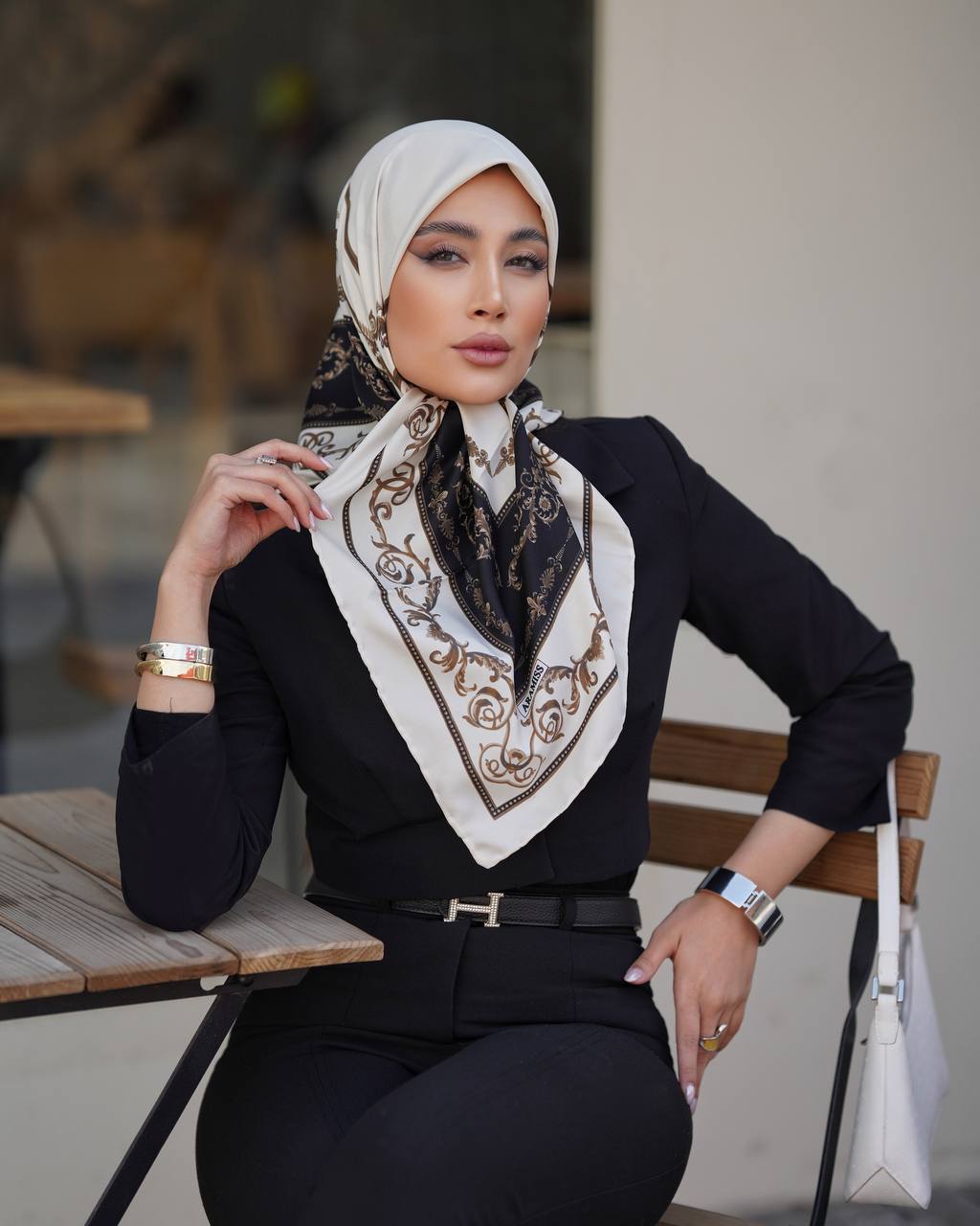 روسری زنانه ابریشم توییل کجراه آرامیس قواره ۹۰