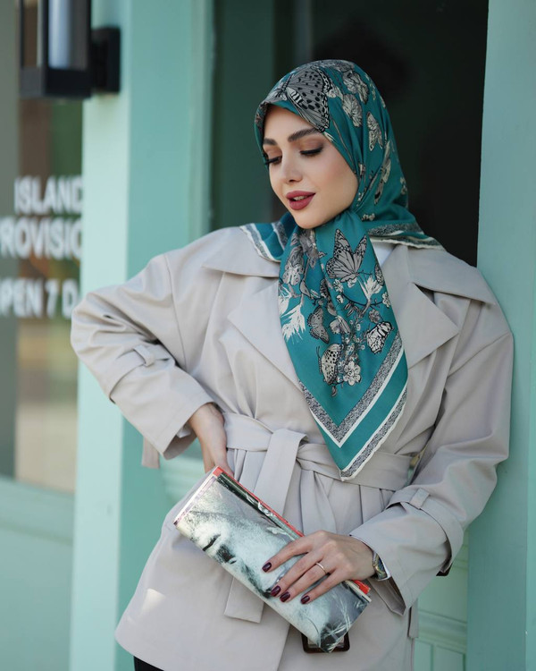 روسری زنانه ابریشم توییل کجراه قواره حدود ۱۰۰