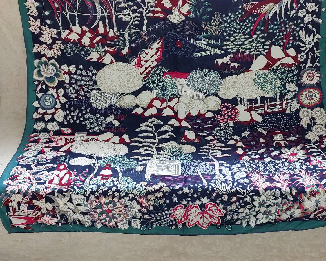 روسری ابریشم توییل کجراه قواره ۱۴۰ دور دست دوز